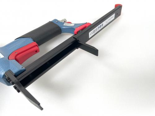 - Agrafeuse pneumatique qui avec son long bec de 5cm, permet un accès aux endroits les plus difficiles